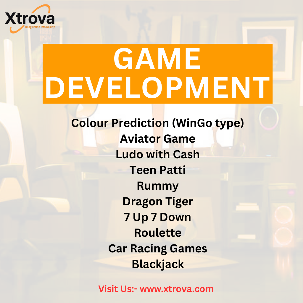 Call NowXtrova offers advanced game development services, creating engaging games like Colour Prediction, Aviator, Ludo with Cash, Teen Patti, Rummy, Dragon Tiger, Roulette, Car Racing, Blackjack, and more, delivering immersive, innovative, and revenue-generating gaming experiences across platforms.
