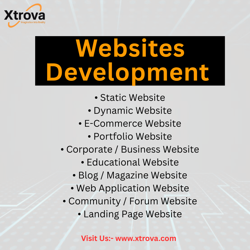 Call NowXtrova specializes in professional website development, offering static, dynamic, e-commerce, portfolio, corporate, educational, blog, web application, community, and landing page websites designed to enhance online presence, user engagement, and business growth with modern, responsive, and functional solutions.